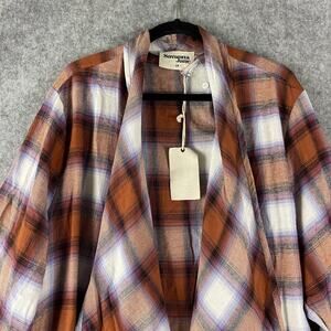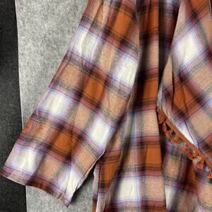 Savanna Jane Flannel Long Cardigan Womens 1X Plaid Tassel Asymmetric Boho Western NEW
