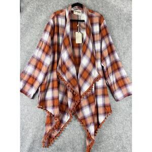 Savanna Jane Flannel Long Cardigan 1X Plaid Tassel Asymmetric Boho Western NEW