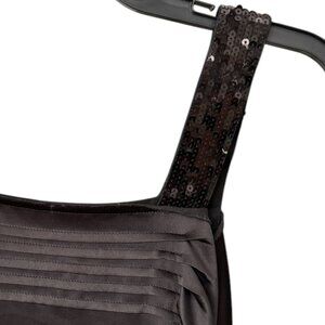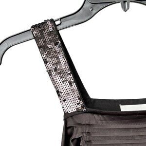 Features: Sequin straps, pleated bust detail, elegant flowy, draped silhouette