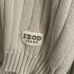 Izod Men's cotton ribbed crew neck sweater in a beige color.
