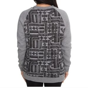 Step up your casual look with this Nike women’s sweatshirt featuring a bold brushed black Nike logo on the front and an eye-catching geometric pattern on the back.