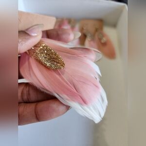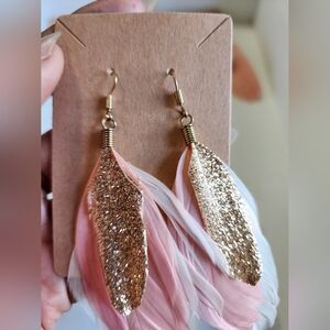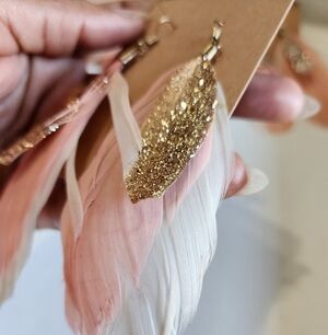 Elegant earrings with gold glitter and pink feathers. Perfect for adding a touch of glamour to any outfit. Handmade form a locally shop in own.