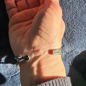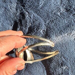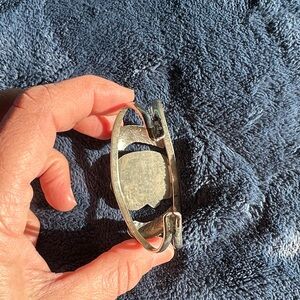 Elegant silver bracelet featuring a striking turquoise stone. Perfect for adding a touch of sophistication to any outfit.the metal and the stone have not been tested as is its beautiful the silver looks great and turquoise is light blue please let me know if you have any questions