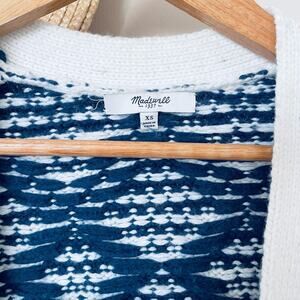 Madewell Contrast Fair Isle Oversized Cardigan Sweater Navy Ivory