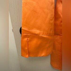 Wrap waist, v neck, deep cut, flared sleeves, collared neck, orange, peach, bright, festival, summer, spring break, vacation, going out, girls night, date night