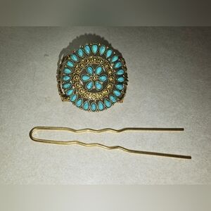 Gold and Turquoise Hair Clip