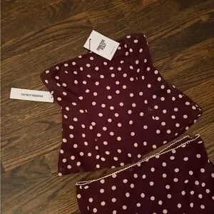 NWT Princess Polly Sydni Scarf Detail Strapless Top and Midi Bias cut skirt Chocolate / Pink Polka.