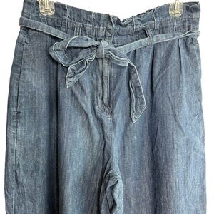 J. Crew Re-imagined Paper Bag Pants in Chambray Size 6 Hemp Cotton Blend Cropped