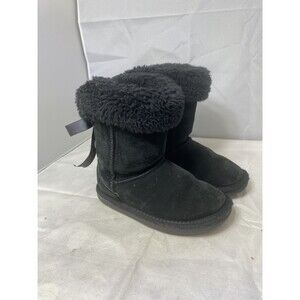 LAMO Suede Girls Pull-On Fleece Lined Winter Snow Black Boots/Shoes Size 12y