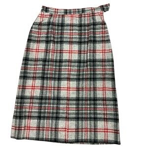 Vintage Pendleton 1960s turnabout gray and red plaid wool skirt USA made XS