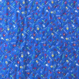 This vintage child's square blanket is hand-made, giving it a special touch and charm. The unique pocket design on one side adds a functional and whimsical element to this cozy and durable blanket. Perfect for young children or as a thoughtful gift for a young child, this handmade blanket is sure to be a treasured item for years to come. Zipper and ties hold the pocket together. One side white fabric; one side blue. Yellow trim. 42.5" square. Clean. No visible stains.