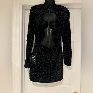 Lulus Marvelous Radiance Elegant Black Sequin Cutout Long Sleeve Mini Dress