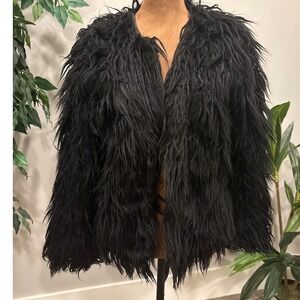 LANSHIFEI Black Shaggy Faux Fur Jacket Coat Women's XXL