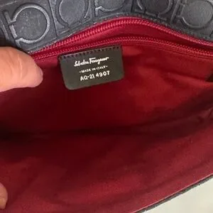 The bag offers a sleek shoulder carry with a secure flap closure, making it both stylish and practical for everyday wear or evening use. The embossed leather adds depth and texture while remaining understated—an elevated take on logo design from Ferragamo’s early-2000s era.