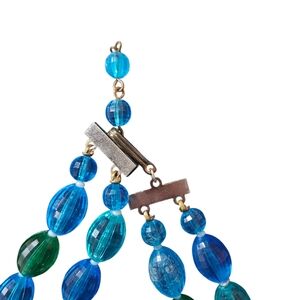 This stunning necklace features vibrant blue and green beads, perfect for adding a pop of color to any outfit. Its elegant design makes it a versatile accessory for both casual and formal occasions.
