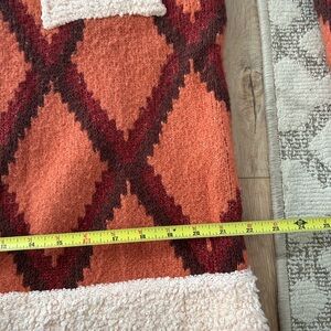 Stay warm and stylish with this cozy diamond pattern jacket. Featuring a blend of orange and cream colors, this jacket is perfect for adding a pop of color to your wardrobe. Ideal for casual outings and layering.