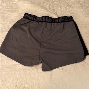 Elevate your workout with these Under Armour shorts. Sleek gray and black design. Ideal for active wear. There is no size or tag but they fit like a small