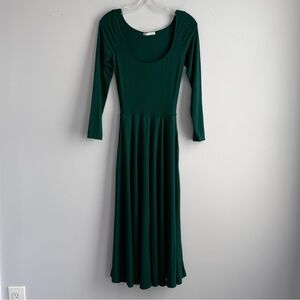 Reformation Lou Midi Dress Emerald Green XS Long Sleeve A Line Fit and Flare