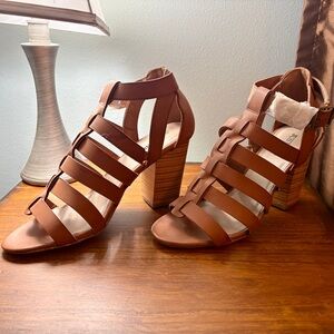 JustFab Tan Strappy Block Heels