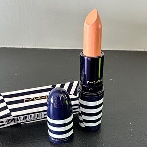 MAC Salute is a very warm-toned, light-medium peach with a natural finish. It is a limited edition lipstick