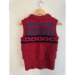 Free People Chunky Knit Sweater Vest Red Pink Blue Fair Isle Boho Small