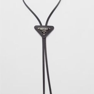 Class 100 % Authentic Prada Saffiano leather bolo tie. Box and Authentication Card Included. Classic heritage emblem meets modern design. Ready for the beach to black tie.