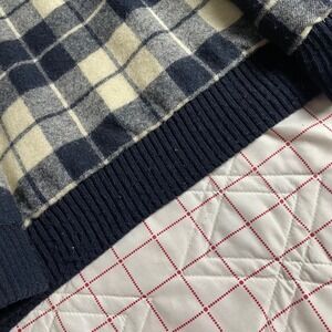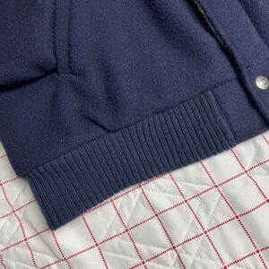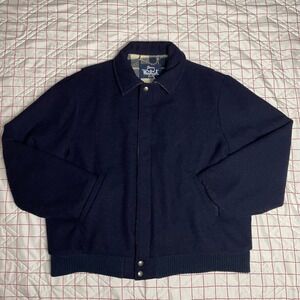 Woolrich Men Large Wool Jacket Navy Blue Plaid Lined Bomber Style Made USA