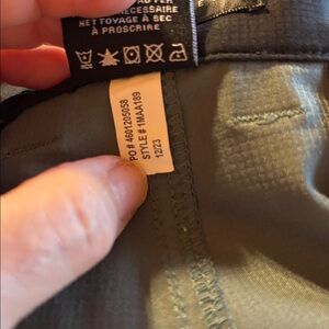 Size is 34, 9" inseam. Color options s a beautiful green, on their website it's called balsam green. In like new condition!!