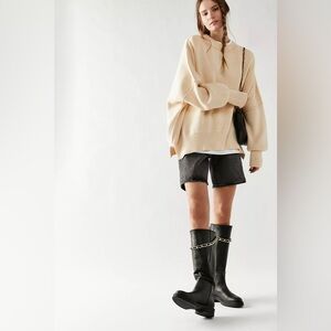 Ribbed mock neck pullover sweater featured in a tunic length.