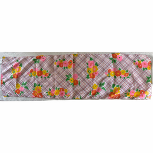 Vintage Rectangular Neck Scarf Bright Floral Grid Plaid Pink Yellow Orange