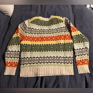 Stay warm and stylish with this multicolor patterned sweater. Perfect for adding a pop of color to your wardrobe.