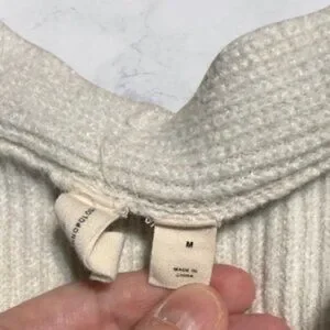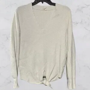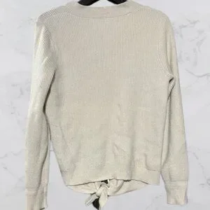 Anthropologie Moth Sweater Size M Ribbed Knit Ivory V Neck Tie Front Pullover