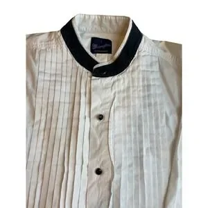 VTG Wrangler Western Shirt Mens L White Black Tuxedo Pleated Front Long Sleeve