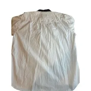 Command attention in this striking Wrangler Western shirt. The crisp white fabric is adorned with elegant vertical pleats down the front, creating a sophisticated tuxedo-inspired look. A sharp black collar adds a touch of bold contrast, while the classic long sleeves with button cuffs offer timeless appeal. Perfect for a formal gathering, a night out dancing, or even a unique take on Western-inspired attire.