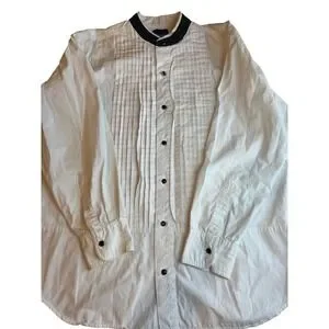 Keywords: western wear, tuxedo shirt, pleated front, black collar, long sleeve, button cuff, menswear, formal shirt, country music, vintage style, dressy casual, performance, party shirt
