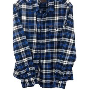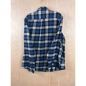 Orvis Blue Plaid Flannel Shirt Men’s Medium Cotton Button Front Elbow Patch