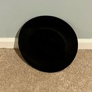 EUC Lanzom Black Hat, one size. Fedora style with a ribbon and wide brim. Elastic inside to fit hat on head. From a smoke-free home.