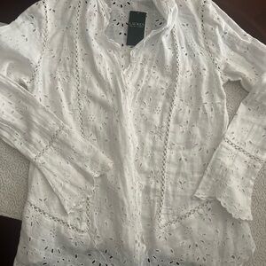 Lauren Ralph Lauren NWT White Eyelet Linen Duster Cottagecore Boho Coastal Small