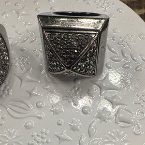 Bold silver ring with intricate detailing. Perfect for a statement look.