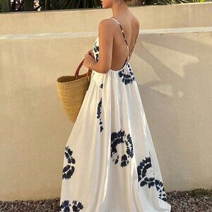 Beige Boho Women's Full Floral Print Spaghetti Strap Dress