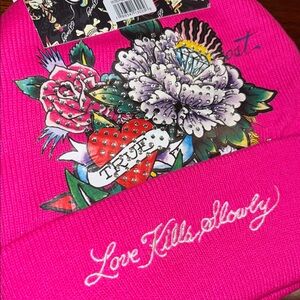 Ed Hardy NWOT! Black and Pink Beanie Set