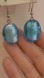 This is a stunning pair of light blue artisan foiled glass drop earrings. The glass bead measures 1" in length and they are in excellent condition.