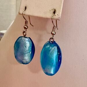 Gorgeous Light Blue Artisan Foiled Glass Drop Earrings