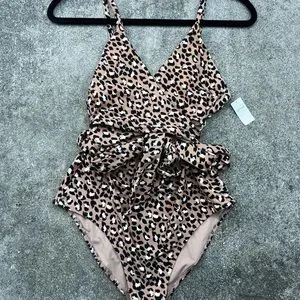 NEW Aerie Leopard Print Wrap One Piece Swimsuit Size L
