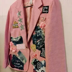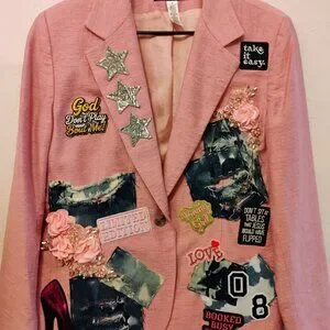 Pretty in Pink Size 16 blazer with patches - thrifted, dry cleaned and designed!