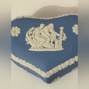 Extremely cute heart shaped jasperware porcelain box by Wedgwood. Perfect gift for someone you love. Beautiful romantic vibes for your vanity.