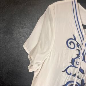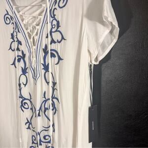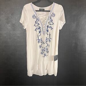 Lulus Down In Kokomo White And Blue Embroidered Lace Up Dress Size Medium
