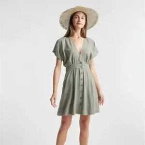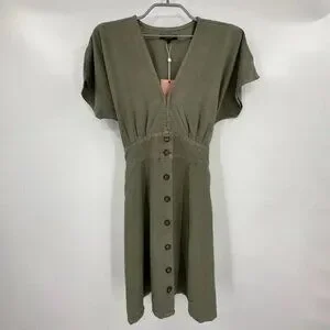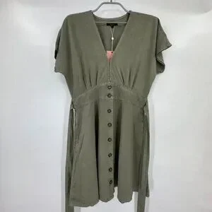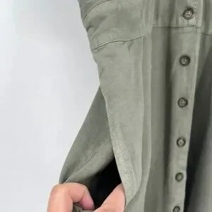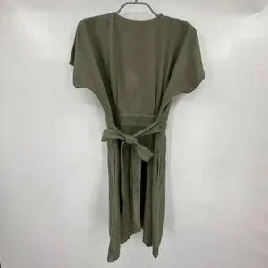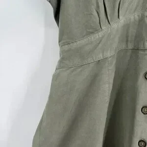 Quince Vintage Wash Tencel Button Front Dress with Tie Waist size S Olive Green