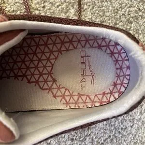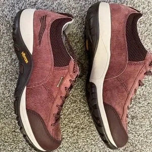 Dansko athletic shoes in a rich reddish-brown. Features durable suede material. Comfortable fit long walks, light hiking, casual. Great for light winter walks!
