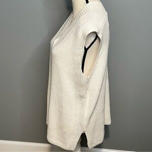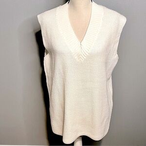 Chic cream V-neck sweater vest. Soft knit fabric. Ideal for layering.